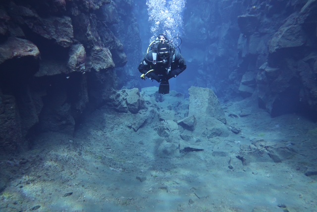 Da das Wasser der Silfra das ganze Jahr über nur 2–4 °C hat, ist das Tauchen dort nur mit Trockentauchanzug erlaubt – und das völlig zurecht.