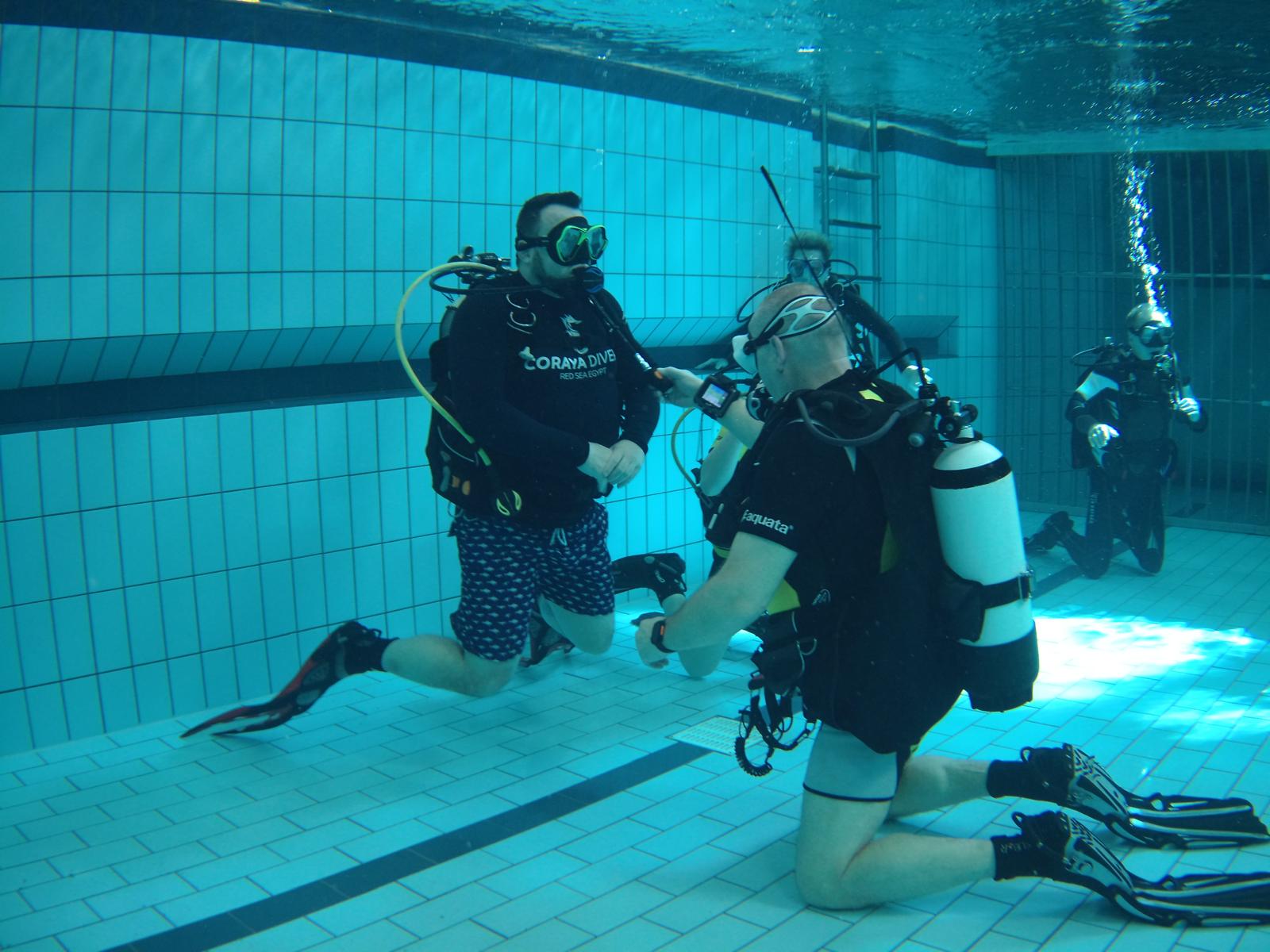 Während einer längeren Pause können selbst erfahrene Taucher Routine verlieren. Übungen in der Schwimmhalle helfen dabei, wichtige Grundfertigkeiten wieder zu trainieren. Dazu gehören zum Beispiel:
